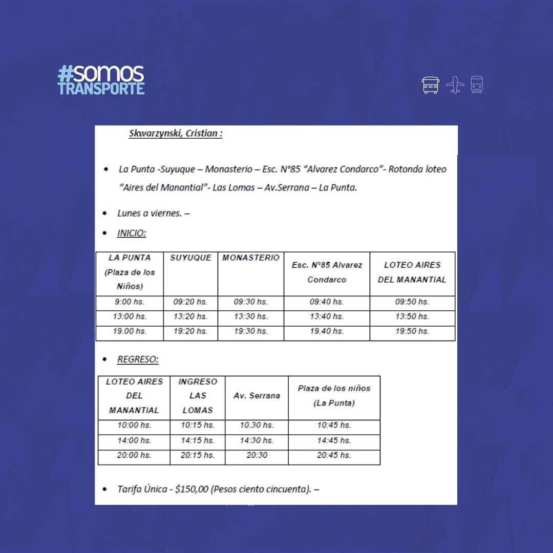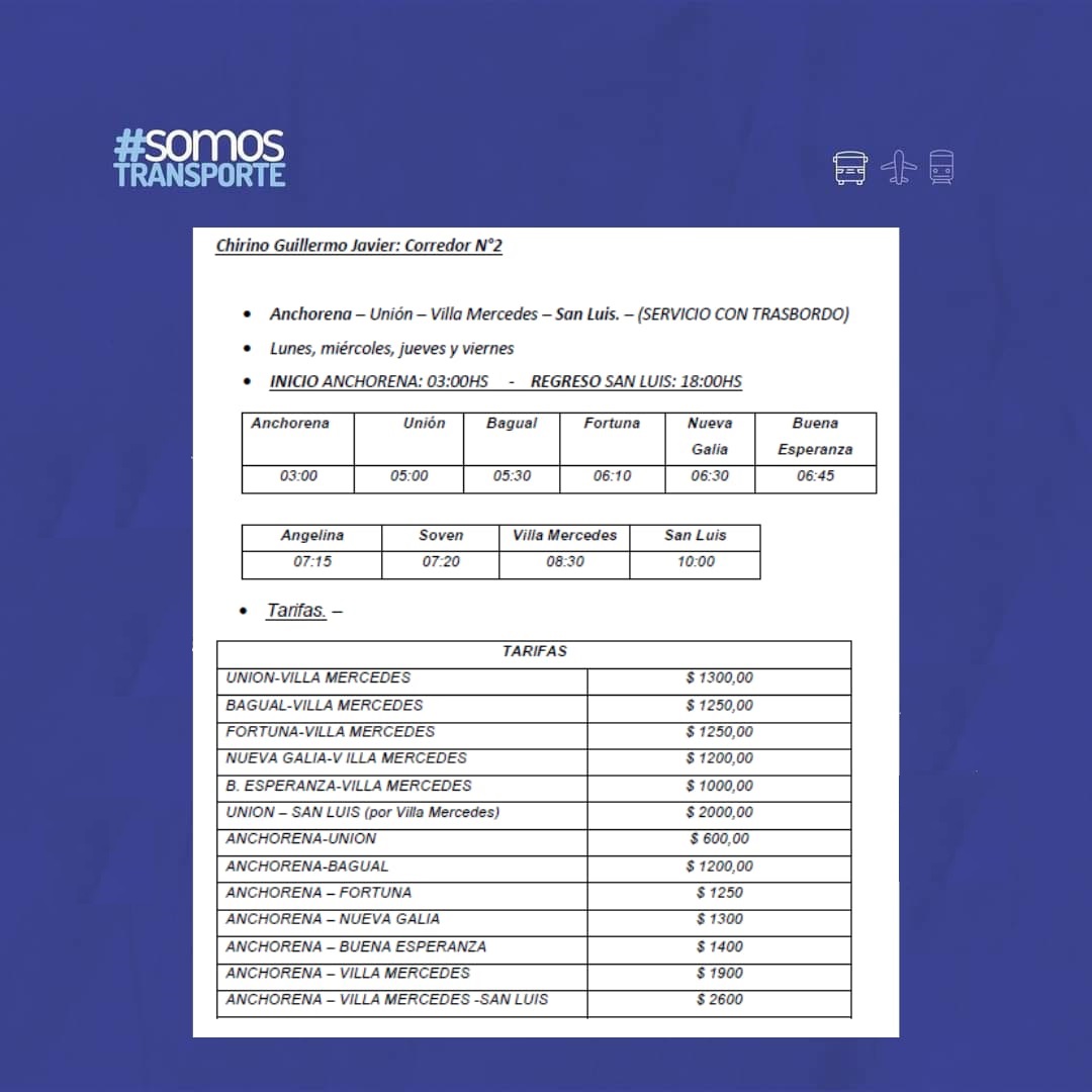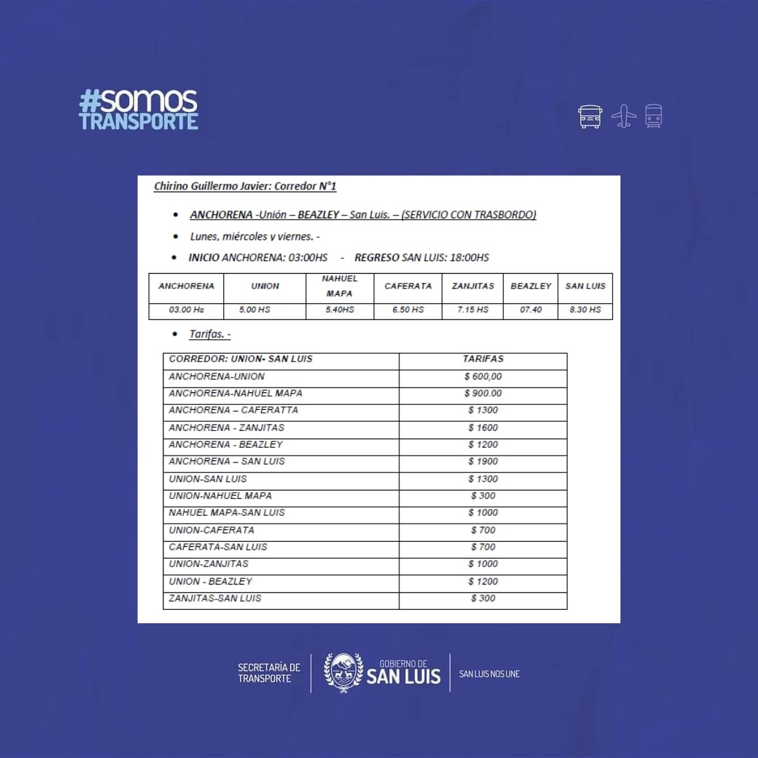 Atenti. Con el objetivo de seguir uniendo a todos los puntanos los nuevos servicios son: